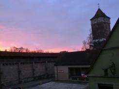 ↓部屋から朝焼けのローテンブルクの城壁を1枚。ホテルは城壁のすぐ側でした。