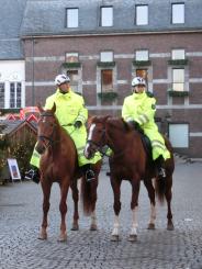 市庁舎の前に着いたら、騎馬警察官さん2人が登場。格好の被写体登場に、カメラギャルが多いツアーメンバーさんと揃って大写真撮影会開催(笑)。石畳に旧市街の街並みに騎馬。絵になります。