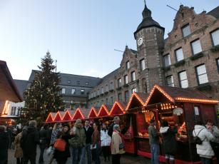 市庁舎の時計の下で解散、同じ場所で再集合で、デュッセルドルフのクリスマスマーケットのフリー散策スタート。デュッセルドルフのクリスマスマーケットがこのツアー最後のクリスマスマーケットです。