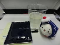 21時5分、ドリンクサービス。搭乗航空機会社オリジナルのかぼすジュースをいただきました。