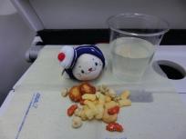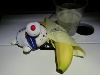 スナック類とバナナがあった中からバナナをチョイスしたのは、バナナに巻かれたナフキンが可愛かったから♪日系の航空機会社ならではの、ちょっとした気配りですね☆バナナとナフキンとかぼすジュースの色が合っていてgood。