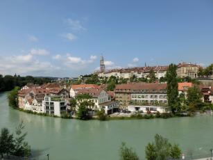 バラ公園から見た旧市街の景色とクマ公園から見る旧市街の景色は、標高が異なるためか大分印象が違います。クマ公園から見る方が平面的っていうのかな…。でも、旧市街がアーレ川にグルっと囲まれている様子は、こちら→からの方が分かりやすいです。