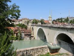 11時13分、クマ公園を出発して、←のニーデック橋を渡り、徒歩でベルン旧市街を散策します。