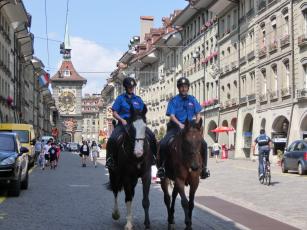 騎馬警察の警官さんに遭遇。カッコイイ♪ ↓の写真の向かって左側の警官さんは女性です。