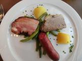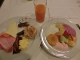 生サーモン、ハム2種類、ソーセージは普通のソーセージとチキンの2種類で、チキンはハーブの香りがして人によって好き嫌いが分かれるかも…。
