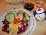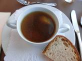 ポテトスープに浮かぶ赤い小片が何かを同じテーブルの方がウェイトレスさんに尋ねると「フライドペッパー」だそうでした。