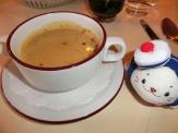 食後のコーヒーは、エスプレッソマシーンのラテマキアート。
