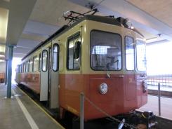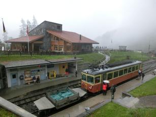 ヴィンターエッグ駅でグリュッチュアルプ行きの列車が来たので、喜んで写真を撮っていたら、ちょうどミューレン行きの列車も到着。一瞬、この先も歩くかどうか(コース表示によると30分だったか40分だったか…うろ覚えです)迷って、列車に乗り込みました。