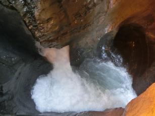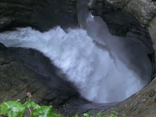 トリュンメルバッハの滝は、岸壁の内部に滝が流れ落ちていました。エレベーターで第6滝まで昇り、そこから上に行くか下に下りるかは各自の自由。私は、第6滝から最上部の第1滝まで登り、そこから下りました。