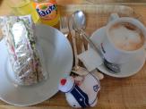 添乗員さんが、ツアーメンバーの分のテーブルを確保してくれていたので、サンドイッチとファンタオレンジをトレイに乗せてレジに並び、コーヒーはレジで注文。