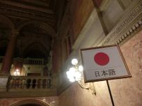 ガイドツアーの時間まで劇場のエントランスホールで待機。時間になったら、それぞれが参加する言語の国旗が目印の集合場所に集まります。
