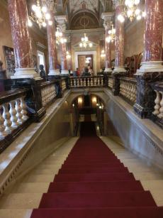 そして、私的メインのエリザベート皇妃の通ったの階段→。この国立オペラ劇場にエリザベート皇妃が訪れたときは、この階段を使用したそうです。内部見学ツアーでも、当然、この階段は立ち入り禁止でした。見るだけ〜。