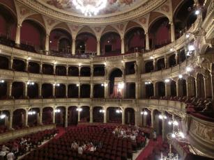 あちこちの通路を通り、廊下を通って劇場の上階の客席に。