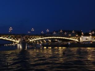 夕焼けから、夕闇が迫り、そしてライトアップされて川岸の建物や橋にイルミネーションに輝く時間を船上から眺めることができました。