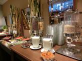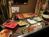 ヨーグルト飲料がコップに入っていたので、プレーン、マンゴー、ストロベリーの3種類をいただきました。普通のヨーグルトが少しゆるい感じ。日本食コーナーがあり、味噌汁やご飯がありました。ご飯は少し黄色っぽくて…。2日目の朝食から日本食はいただきません。