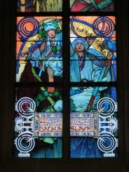 窓のステンドグラスもミュシャのアイデアを基に作られたのだそうです。