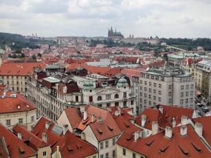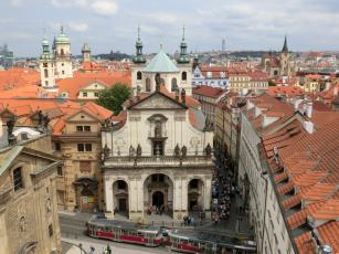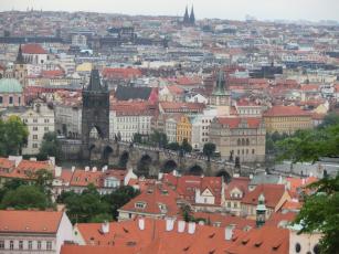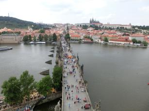 橋塔から見渡せた旧市街側の景色は→。このときは、おりよく路面電車が通ったので、旧市街の街並みと路面電車の組合せをゲットできました♪