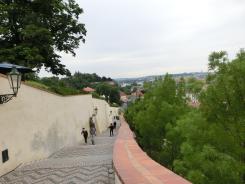10時に集合場所を出発し、プラハ城からカレル橋へは、→のような階段とスロープが組み合わされた坂道をゆっくりと下って行きます。だらだらと長い坂道なので、私たち下りはおしゃべりしながらゆっくり歩いて、風情がありますけれど、上りは大変かもしれません。