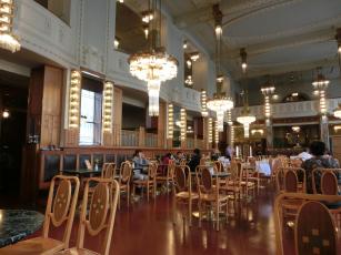 スメタナ・ホールの次は、カフェ。ここでコーヒーを飲んだら、それだけで満足しそうです。随所にアールヌーヴォーしています。