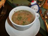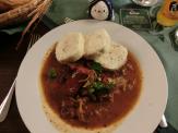 野菜スープはおいしく、グヤーシュはお肉がトロトロ、ブルーベリーケーキも甘すぎずにおいしくて、このレストランの食事はとても満足度が高いです。