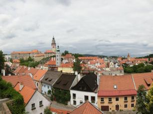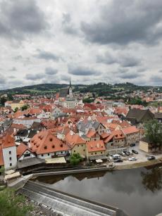 高台まで上り、チェスキー・クルムロフ城の展望スポットから、市街地を眺めます。