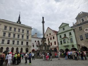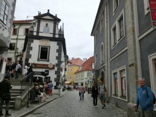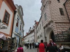 チェスキー・クルムロフの旧市街のメインストリートをガイドさんに率いられながら歩きます。