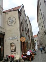 展望スポットでの写真タイムの後、来た道を引き返し、スヴォルノスティ広場にほど近い…スヴォルノスティ広場の(1本だったかな)裏手と表現するのが適当かどうか…、昼食のレストランの場所を確認し、集合時刻を決めてフリータイムになりました。レストランの目印は壁に描かれた鳥。