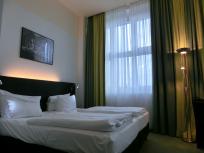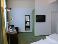19時20分、部屋に入れました。私たちの部屋は、→な感じの変形の部屋。変形部分にスーツケースを広げました。プラハのホテルの部屋よりさらに一回り狭くなったような気がします。