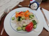 サラダは大根の甘酢和えみたいな感じでした。ポテトの海を泳ぐマスは半身だけ食べてリタイア。ポテトは完食。アイスクリームが冷たくて美味しかったぁ♪