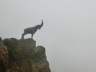 一応、ここまで来た証拠写真として、ガイドブックのピッツネイル展望台の項に必ず掲載されている←のヤギの像を撮りました。