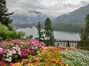 周辺を散歩したり、バス停前の庭園風になっているところからサン・モリッツ湖やセガンティーニ美術館を眺めたりして、思い思いに時間を過ごしました。