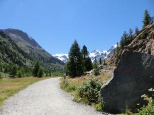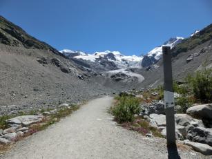 ←な、ほとんどアップダウンのないハイキングコースをモルテラッチ氷河目指して歩きます。