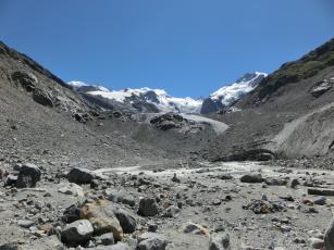 ここで、添乗員さんご提案のモルテラッチ氷河往復ハイキングに行かず、個人でムオタス・ムライユ展望台へ行って昼食を展望台レストランで食べるツアーメンバーさんたちとはお別れ。モルテラッチ氷河へ行くのは…3人!で、ムオタス・ムライユ展望台へ行くツアーメンバーさんの方が多いです(爆)。添乗員さんは、モルテラッチ氷河往復ハイキングを提案していたので、人数の少ない方に同行です。