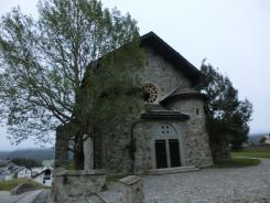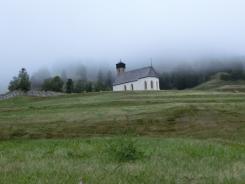 さらに、ゆるやかな上りの道を歩いて行くと、牧草地の中に教会がありました。