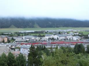 このくらい上っただけで、サメーダンの鉄道駅が俯瞰できました。中央の赤いラインが列車で、止まっているところが駅です。
