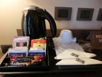 部屋に帰って、備え付けのポットでお湯を沸かしてコーヒータイム。