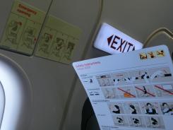 3−3配列の左側窓側2席。非常口席だったので、足元が若干、普通のエコノミーの席よりも広くてラッキー♪ただし、避難経路確保のため、足元には荷物が置けなくて、貴重品を入れたバッグも頭上の荷物入れにin。