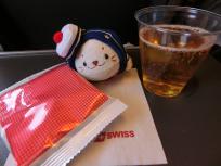 席に落ち着いて、回りを見渡したら、あっれ〜?何だか見たことのあるお顔をした方を発見!思いっきり手を振ったら、その方も気がついて、「あぁ?!」という表情をなさっていました。よくよく思い出すと2か月前の中欧旅行のときの添乗員さんでした。日本人同士なのに日本では顔を会わせずに、スイスから成田へ向かう飛行機内で再会する私たち(ツアー客と添乗員)。日本国内で再会するよりも確率的には高いかも(笑)。今回は中欧旅行のときとは違う旅行会社を利用しており、あちらの添乗員さんもお仕事中でしたので、ご挨拶はしませんでした。