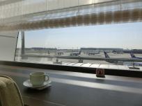 出国したら、カードラウンジに入室。窓際の飛行機がよく見える席が空いていたので、「わ~い♪」と着席。でも、この窓際の席は、この時間は非常に日当たりが良く、暑くなって、すぐに陽が当たらない席に移動(苦笑)。