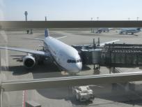 9時02分、ゲートを離れる。地上走行中、JAL→スカイマーク→ANAの順で機体整備場前を通過。