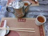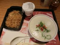 メニュー画面の漢字と英語表記で、皮蛋粥と焼きそばとジャスミンティのセット45HKD(約900円)をチョイス。注文するときはメニューに割り振ってある番号C3と言えば通じました。