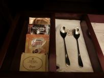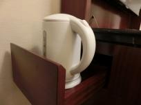 部屋には、ティーポットが備え付けられていました。TVはSHARPのAQUOS。