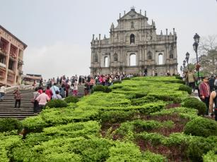 マカオを代表する観光地の聖ポール天主堂跡は、訪れる観光客が多く、思い思いに記念写真を撮る人で溢れていました。