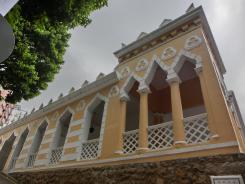 媽閣廟から10分近く歩いたところにある港務局は、インド人の住居跡で、イスラムチックな装飾が見られるとのことです。