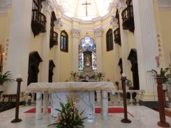大堂(カテドラル)内部は、カメラ・ビデオ撮影禁止。祭壇が、グリーン、ピンキ、イエローのパステルカラー。