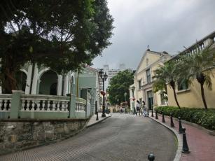 ホテルを出て早々に車窓から一瞬だけ見えるギア要塞。→写真中央の黄色い建物の上部にうっすらと見える小高い丘にギア要塞があります。これが、この日最初のマカオ世界遺産との出会いです。まぁ、ギア要塞は車窓からとリーフレットにも書いてありますから、次の日に個人的に行く予定にしていましたし…。