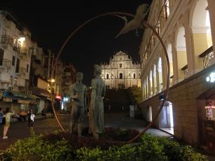 イエズス会記念広場の隅にある「男女」像の男性はポルトガルを、女性は中国を表しているのだそうです。