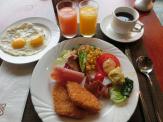 7時45分から8時30分まで、ホテルのレストランで朝食。洋・中華あり。卵料理のコックさんがいたので、私は目玉焼き、えむちゃんはオムレツをお願いしました。私の目玉焼きの黄身は半熟どころか、ほとんど固まっていない生に限りなく近いもの。そういうものなのかなぁ?