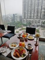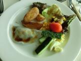 サラダとハッシュドポテトでお腹がいっぱいになったので、パンは食べませんでした。レストランの窓際に座るとホテル前の広場が見下ろせるロケーションで解放感があり、気持ちのよい会場でした。