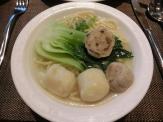 麺のコーナーに、この日はコックさんがいたので、麺や具材を指さしでお願いして、朝から麺(小)をいただきました。魚のすり身の団子が2種とチンゲン菜、スープは薄味で…すみません、私にはイマイチでした。